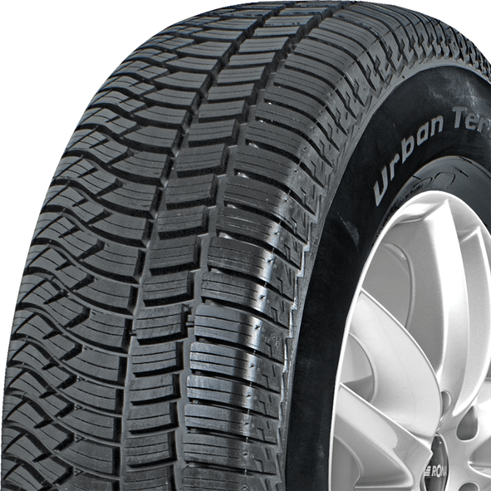 BFGoodrich Urban Terrain T/A is een nieuwe band op de markt van de zomerbanden die tot de middenklasse behoort en die voor een aantrekkelijke prijs verkrijgbaar is. Dankzij het asymmetrische loopvlak is het mogelijk dat de band op alle soorten oppervlakken zich goed gedragt. De band bezit drie belangrijkste voordelen namelijk: zeer goede tractie, hoge weerstand en duurzaamheid van het loopvlak. Zowel in als buiten de stad kunt u op de goede rijeigenschappen rekennen. De band zorgt ook voor 100% hechting op alle soorten oppervlakken. De band wordt met de longitudinale groeven uitgerust die voor een maximale waterafvoer zorgen dus de veiligheid en het comfort zijn gegarandeerd en de zogenaamde ‘aquaplaning’ is bijna onmogelijk.