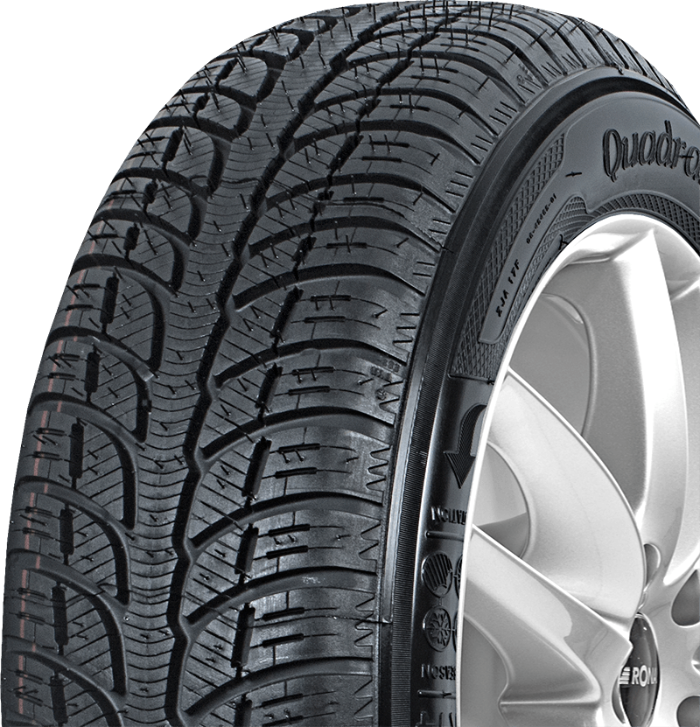 De band presteert goed op glad wegdek dankzij het gebruik van ingesneden loopvlakblokken en een groot aantal lamellen op de centrale rib. De brede dwars gerichte randgroeven in combinatie met lamellen zorgen voor een kortere remweg zowel op droog, alsook op nat wegdek. Het rijden op Kleber Quadraxer banden is precies en comfortabel dankzij de robuuste en stevige loopvlakblokken en brede centrale rib. Door deze elementen wordt de juiste tractie altijd behouden en de communicatie tussen het stuurwiel en de band loopt efficiënt en zonder storingen. Het model is een perfecte oplossing voor autorijders die behalve economische, gebalanceerde prestaties op alle soorten wegdek ook het comfort en rijplezier van vierseizoenen banden verwachten.